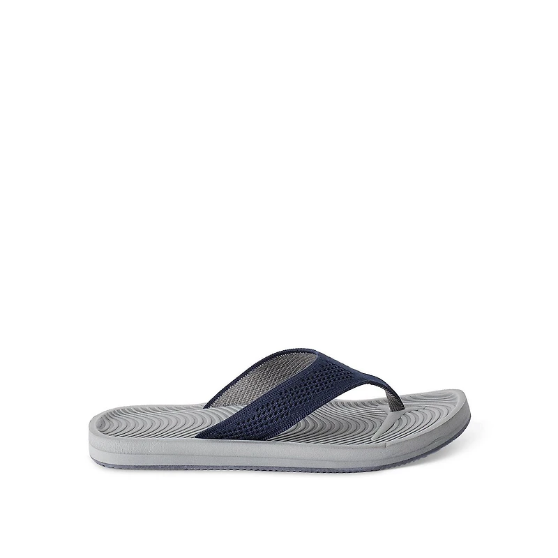 George men’s comfort flip flops are an easy choice for laid-back days and warm-weather plans. The upper is made of breathable fly knit fabric, while the outsole is made of rubber for extra traction. These flip flops feature an open-toe design, a wide thong strap for a secure fit, and a textured footbed for support in every step. Slip them on with swim trunks or casual shorts for relaxed moments.