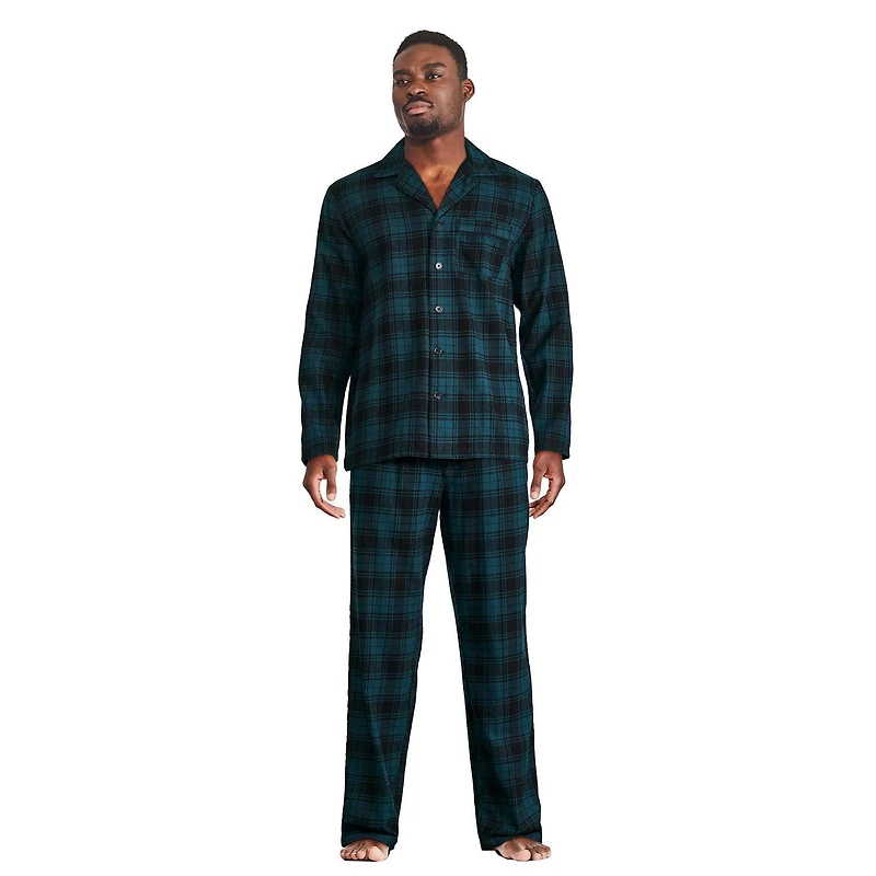 Update your sleepwear collection with the stylish and comfy George men's notch collar pajama 2-piece set. This set is made of flannel for a soft feel when you’re lounging around the house or sleeping. The shirt is designed with a notch collar, long sleeves, a full-button closure, a chest patch pocket, and an all-over pattern. The pants are styled with an elasticized waistband with drawstring and an all-over pattern.