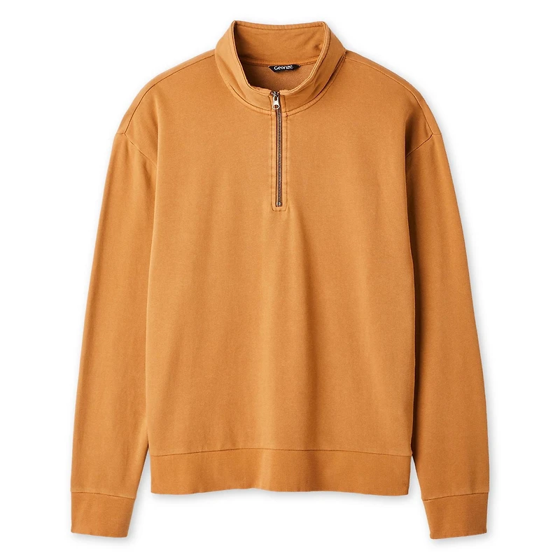 George men’s quarter zip sweatshirt levels up your everyday layers with an easy, pulled-together feel. The French terry fabric keeps it soft, while the vintage wash offers a worn-in look. It’s designed with a mock neck, long sleeves, dropped shoulders, and a ribbed trim at the cuffs and hem for a relaxed silhouette. A quarter-zip closure adds function and versatility, making it simple to pair with jeans, cargos, or joggers.