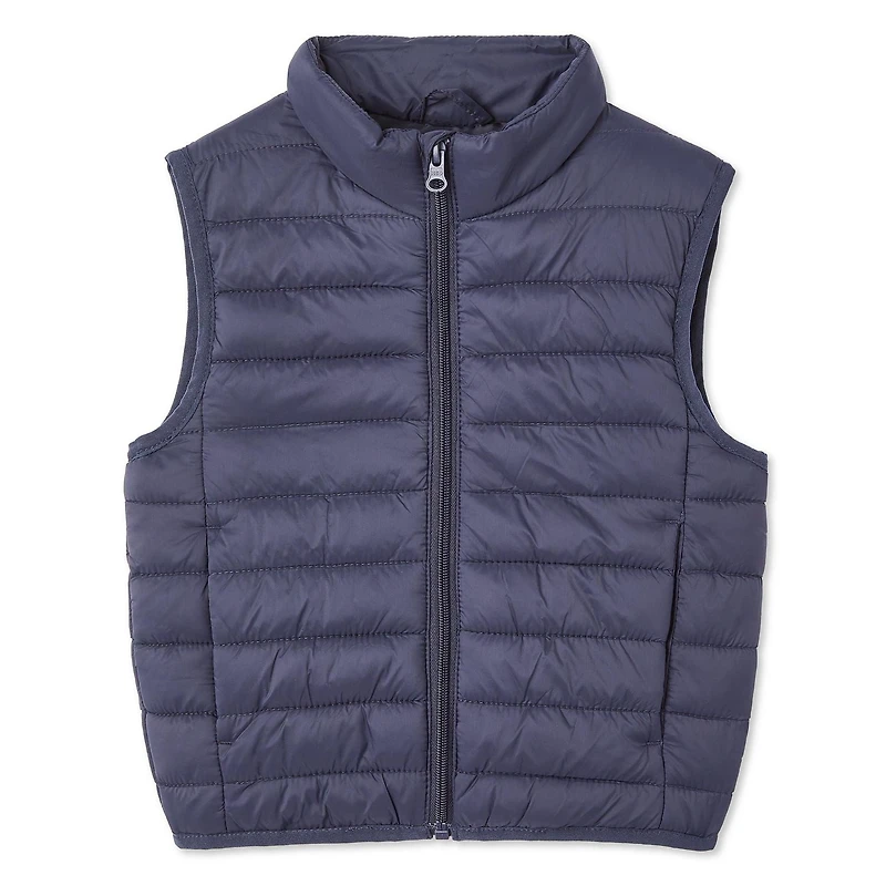 George toddler boys' puffer vest is the perfect option for chilly mornings and evenings. Made of water-repellent taffeta, this lightweight vest is ideal for layering over a long sleeve or hoodie. The quilted design and mock neckline provide extra warmth and coverage. Featuring a full-zip closure and 2 on-seam pockets to keep his hands toasty, this puffer vest is both functional and fashionable.