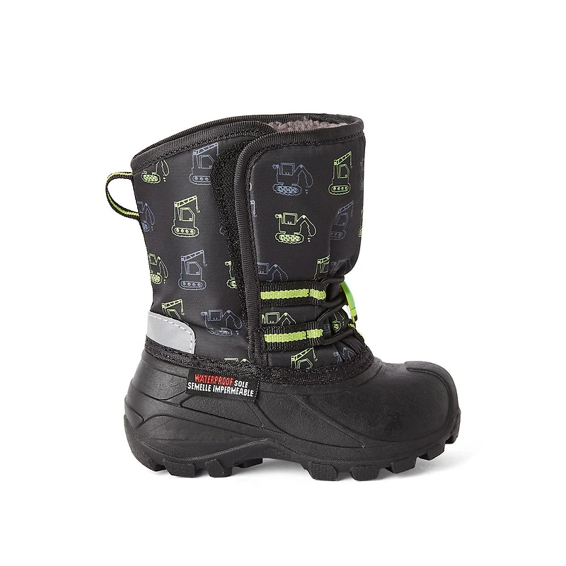 Keep your little tot prepared for the cold weather with George toddler boys' winter boots. Made of a durable nylon upper and rubber outsole, these boots are water resistant with a waterproof sole and foam filling to keep his feet warm down to -20 degrees Celsius. The lug sole provides extra grip, while bungee laces, a bellows tongue, and reflective details add functionality and safety for all his outdoor adventures.