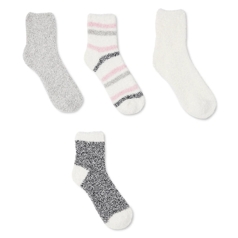 Fuzzy socks make everything better, especially George women's cozy crew socks 4-pack. Composed of soft and warm plush fabric, this pack includes 4 pairs of socks in assorted colours and patterns. Each pair is finished in a classic crew length. Treat your feet when you pick up these socks that are perfect for lounging at home on the weekend and beyond.