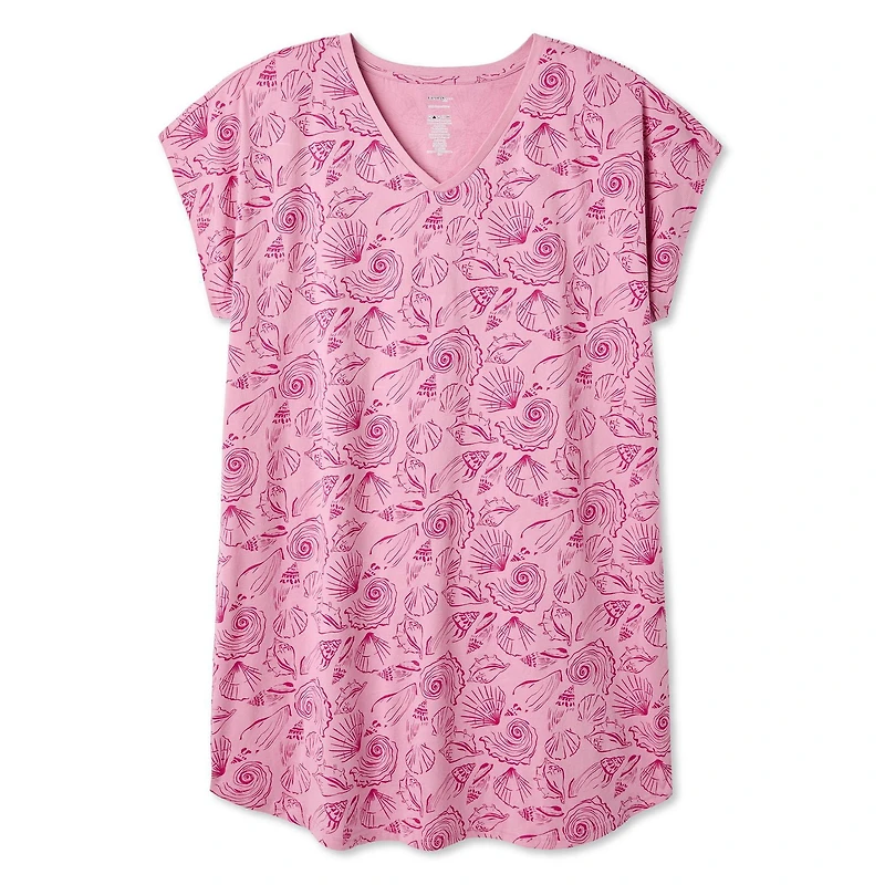Refresh your bedtime lineup with George women’s plus V-neck nightshirt. Made of soft jersey knit, it’s lightweight, breathable, and ideal for winding down or slow mornings. The nightshirt features a flattering V-neck, short dolman sleeves, an all-over print, and a curved hem for a relaxed drape. Effortlessly chic and endlessly comfy, this nightshirt pairs perfectly with your favourite slippers or slouchy crew socks for an easy off-duty look.