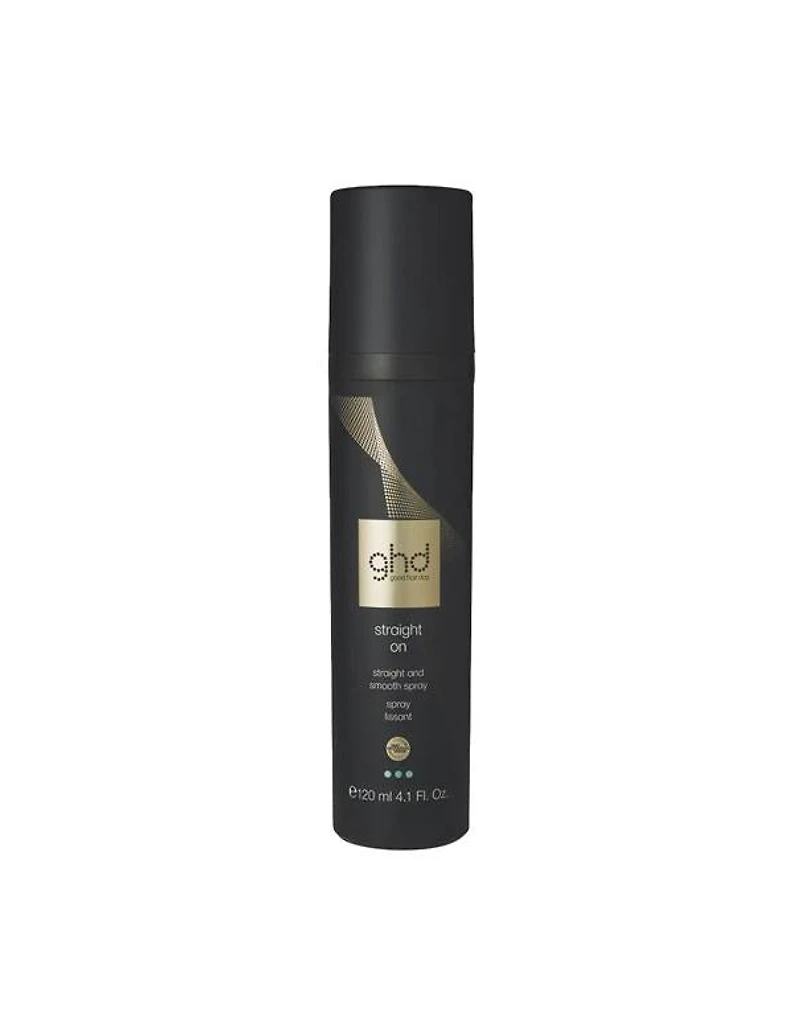 ghd Straight On Straight & smooth Spay - 120ml Maximise your heat styling routine with ghd straight on - straight and smooth spray for a super sleek finish and healthy-looking results. Get up to 3x less frizz when you use ghd straight on spray with the ghd max hair straightener and take sleek styling to a new level. Incorporating the unique ghd heat protection system, harnessing a two-fold action of protecting polymers and conditioning agents to smooth the surface of the hair to protect against damage, ghd straight on spray strengthens and smooths hair fibres for a professional end finish. Suitable for all hair types, ghd straight on spray works in harmony with your styler for a professionally smooth finish and maximum frizz control.