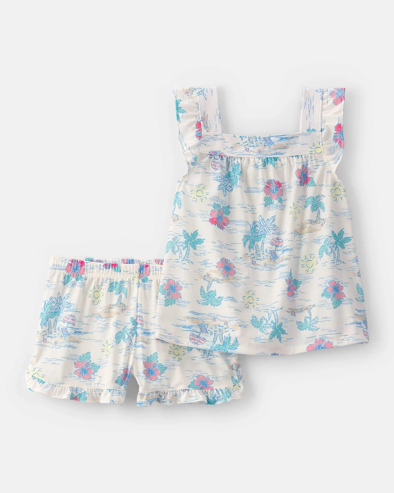 Girls 2-Piece Tropical Beach Sleeveless Loose Fit Pyjama Set