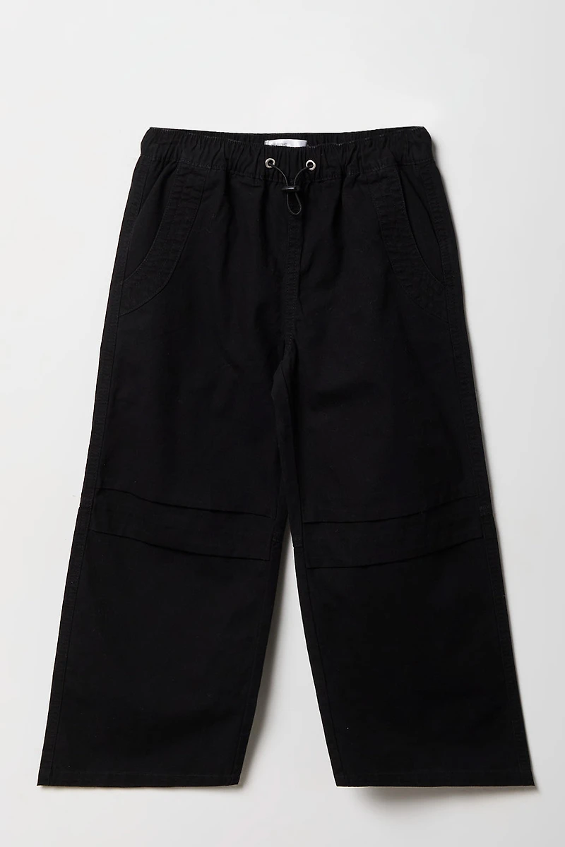 This pant features toggle waist closure, slide-in pockets, and parachute leg.