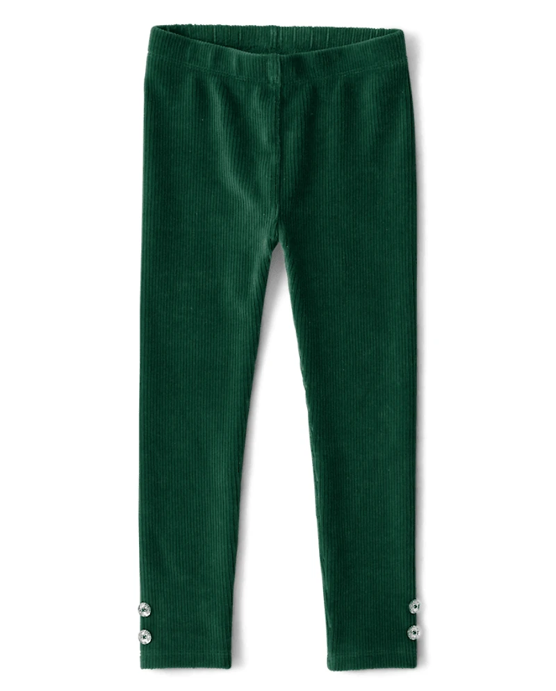 Girls Rhinestone High Rise Faux Cord Leggings - Royal Christmas