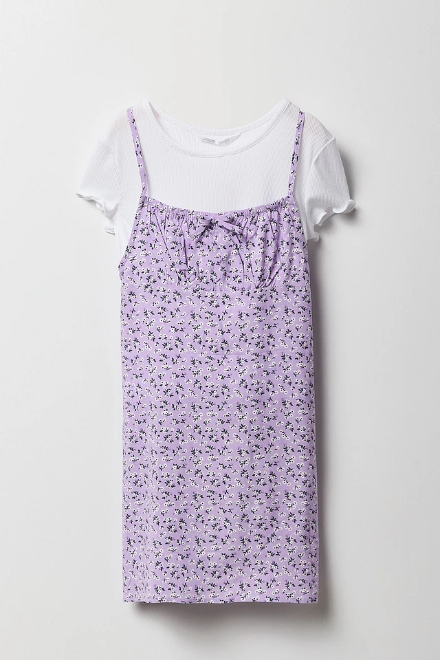 Girls Floral Dress & T-Shirt 2 Piece Set