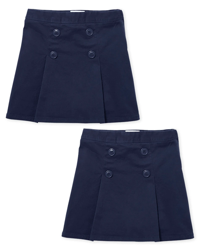 Girls Uniform Stretch Button Skort 2-Pack - Plus