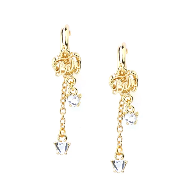 27.0mm Heart Dangle Huggie Hoop Earrings in 10K Gold