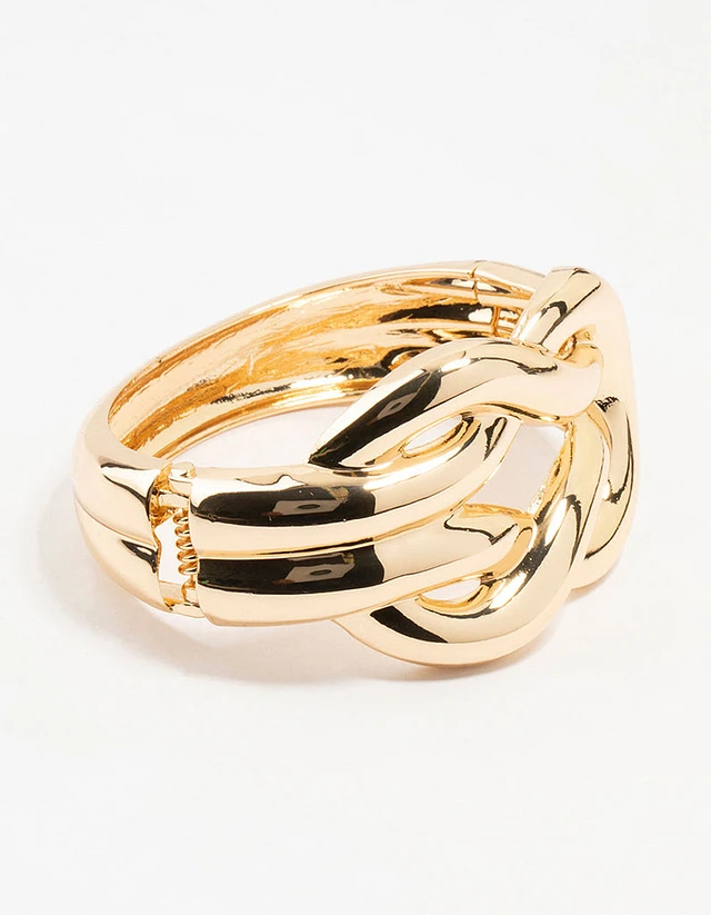 Gold Plated Knotted Cuff Bangle Bracelet