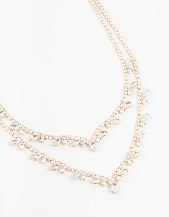 Gold Cubic Zirconia Droplet 2 Row Necklace
