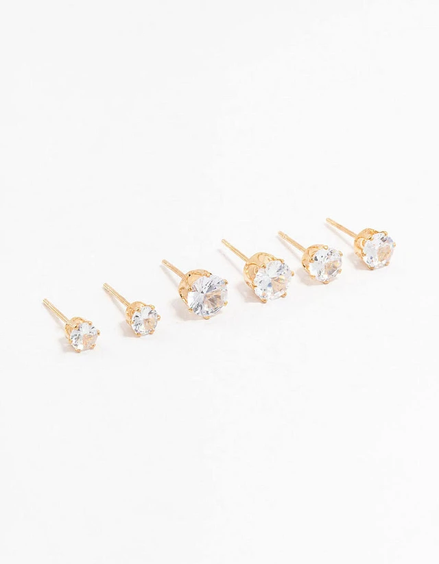 Gold Diamante Graduating Size Stud Earrings 3-Pack