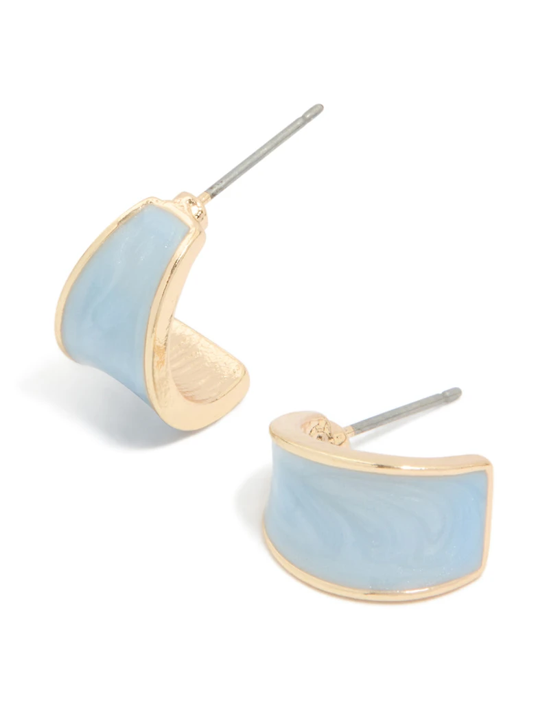 Make every outfit pop with these Gold Light Blue Shiny Curved Open Hoop Earrings. These playful open hoop earrings have a sleek curved shape and glossy light blue shine that gives instant fresh, fun energy. Perfect as everyday hoops or statement earrings, they’re easy to dress up or down – team them with jeans and a tee for coffee runs, a floaty dress for brunch, or a simple blazer for nights out. A cute choice if you love colourful earrings, hoop earrings or on-trend jewellery that brightens your look with zero effort. Colour: Gold, Blue Dimensions: Length 15 mm x Width 9 mm