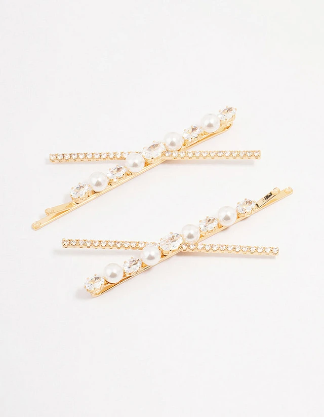 Gold Pearl & Crystal Cross Hair Clip 2-Pack