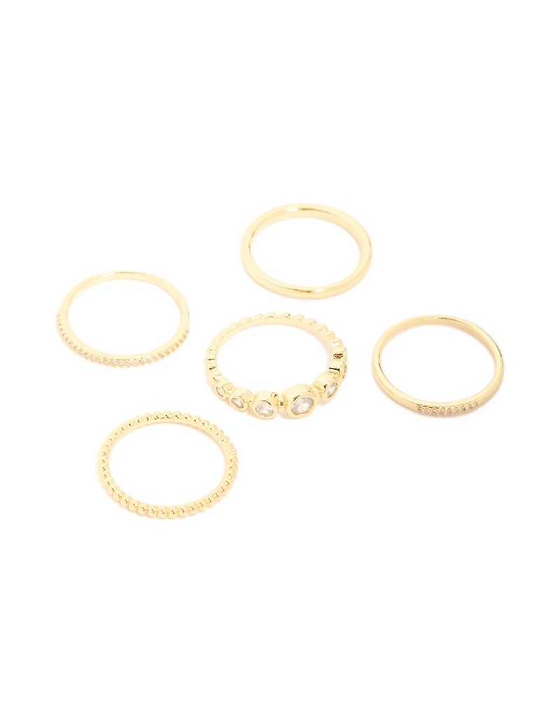 Gold Plated Cubic Zirconia Bezel Rings 5-Pack