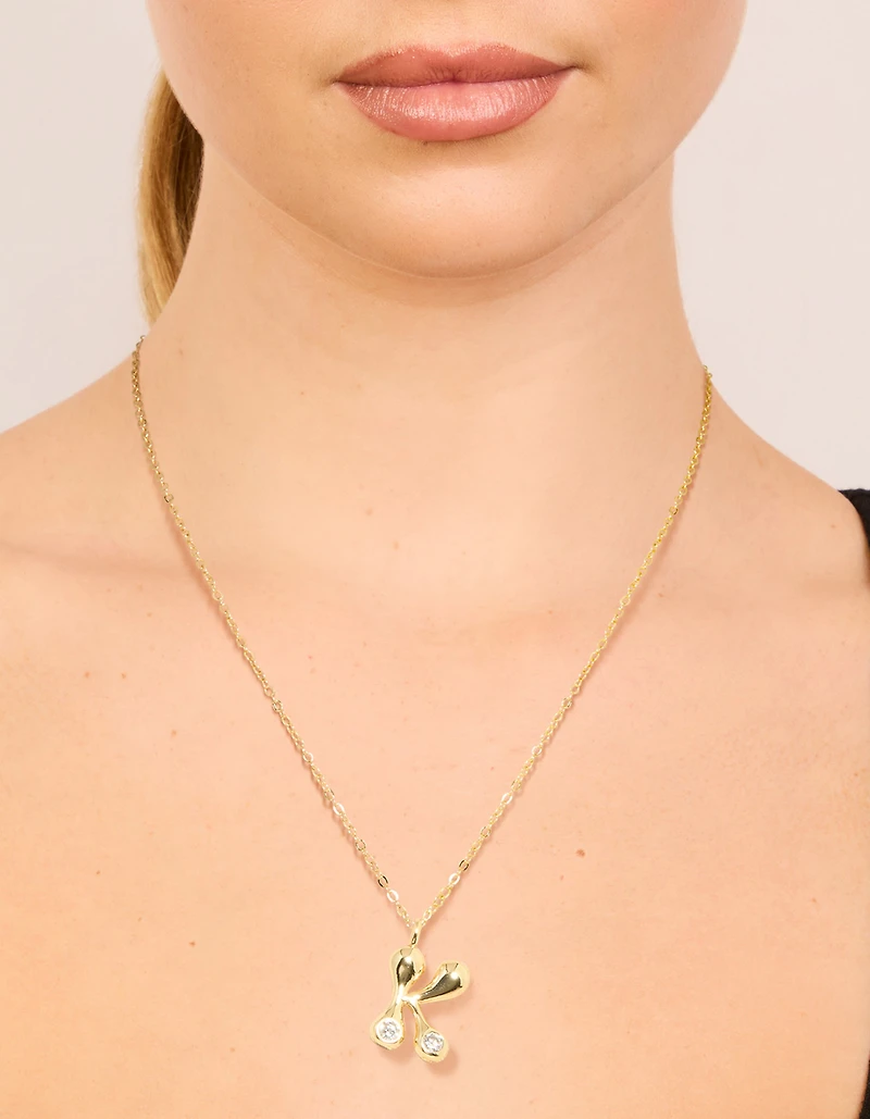 Gold Plated Cubic Zirconia Bubble Letter K Necklace