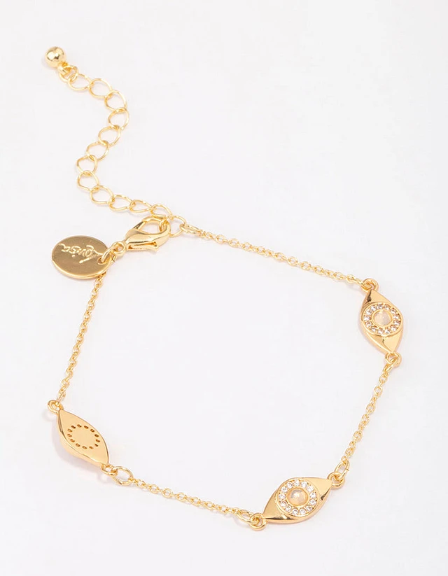 Gold Plated Cubic Zirconia Evil Eye Station Bracelet