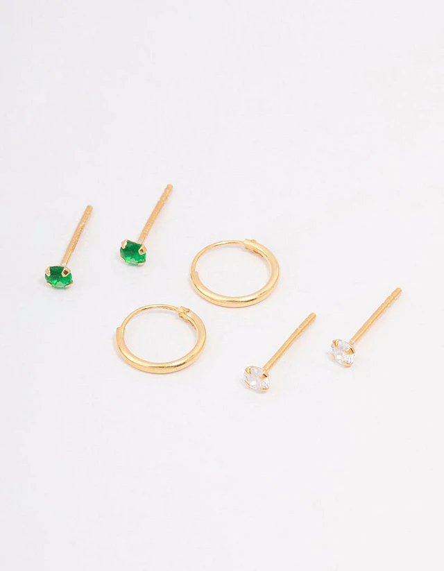 Gold Plated Sterling Silver Cubic Zirconia Stud Pack