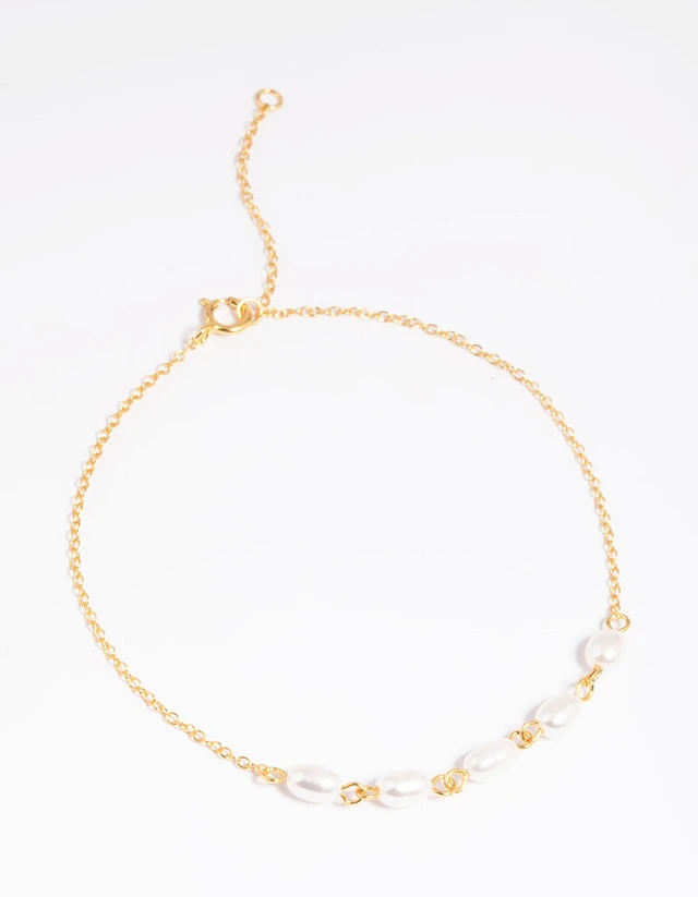 Gold Plated Sterling Silver Freshwater Pearl Chain Bracelet