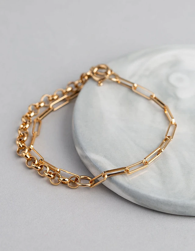 Gold Plated Sterling Silver Half & Half Chain Bracelet