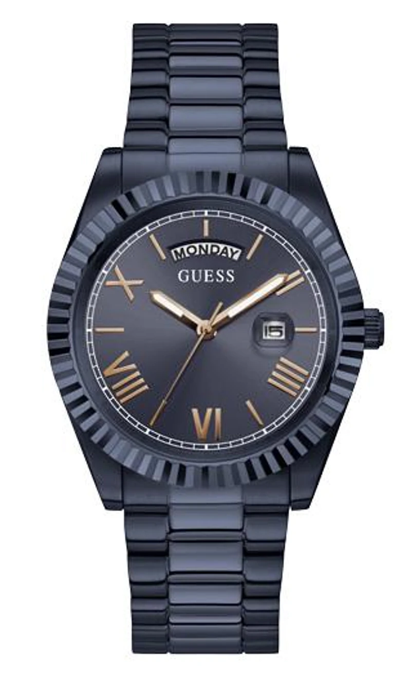 The Guess Men's Navy Stainless Steel Watch is a sleek and modern accessory, featuring a deep navy dial and durable stainless steel design. This watch blends sophistication with a bold, contemporary edge—ideal for those who want a versatile timepiece that stands out with refined style.