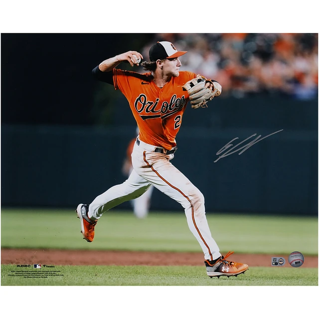 Gunnar Henderson Baltimore Orioles Autographed 16" x 20" Orange Jersey Throwing Photograph