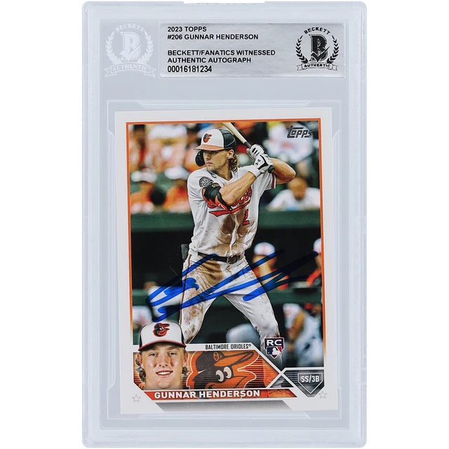 Gunnar Henderson Baltimore Orioles Autographed 2023 Topps #206 Beckett Fanatics Witnessed Authenticated Rookie Card