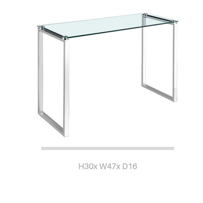 Gyna console table large glass top with shiny gold legs
