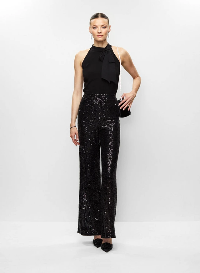 Sleeveless Halter Neck Top & Wide Leg Pull-On Capris