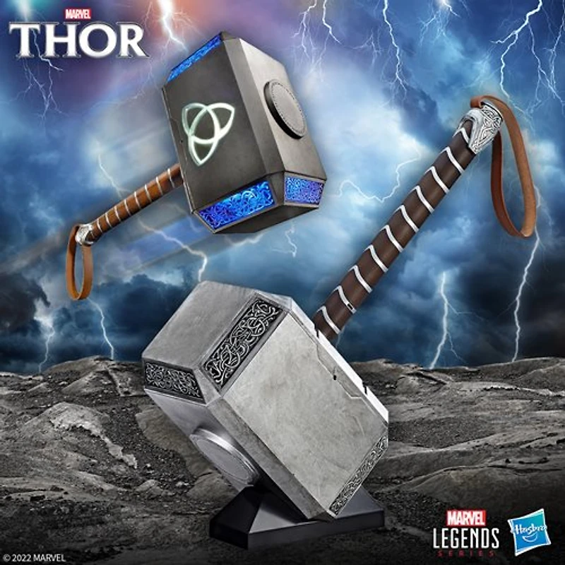 Marvel Legends Thor Mjolnir Hammer Electronic Prop Replica:Are you worthy?Wield the power of the Thor with this 1:1 scale role-play prop replica!Features intricate detailing, sound effects, and a light-up lightning effect!Measures about 19 3/4-inches long, with a die-cast metal pommel."Whosoever holds this hammer, if he be worthy, shall possess the power of Thor." Worthy Marvel fans can now wield the power of the God of Thunder with this fantastic 1:1 scale role-play Mjolnir. Measuring about 19 3/4-inches long, with a die-cast metal pommel, the premium Marvel Legends Thor Mjolnir Hammer Electronic Prop Replica features intricate detailing, sound effects, and a light-up lightning effect! A hidden Odin symbol illuminates when triggered by voice recognition technology. Requires 3x "AA" batteries, not included. Ages 18 and up.UPC: 630509531011Package Weight (pounds): 5.15Package Length (inches): 12Package Width (inches): 8Package Height (inches): 22Package Cubic Feet: 1.22Package Dimensional Weight: 15.19Carton Weight (pounds): 5.15Carton Length (inches): 12Carton Width (inches): 8Carton Height (inches): 22Carton Cubic Feet: 1.22Carton Dimensional Weight: 15.19Country of Origin: ChinaAge: 18+Gender: MaleBatteries Included: NoBattery Type: 3 x AA