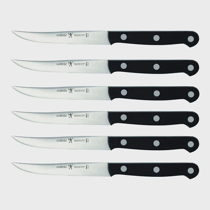 The Classic 6-piece steak knife set elevates your experience with eating meat.High-quality German stainless steel strengthens these durable, Spanish-made knives. Confidently