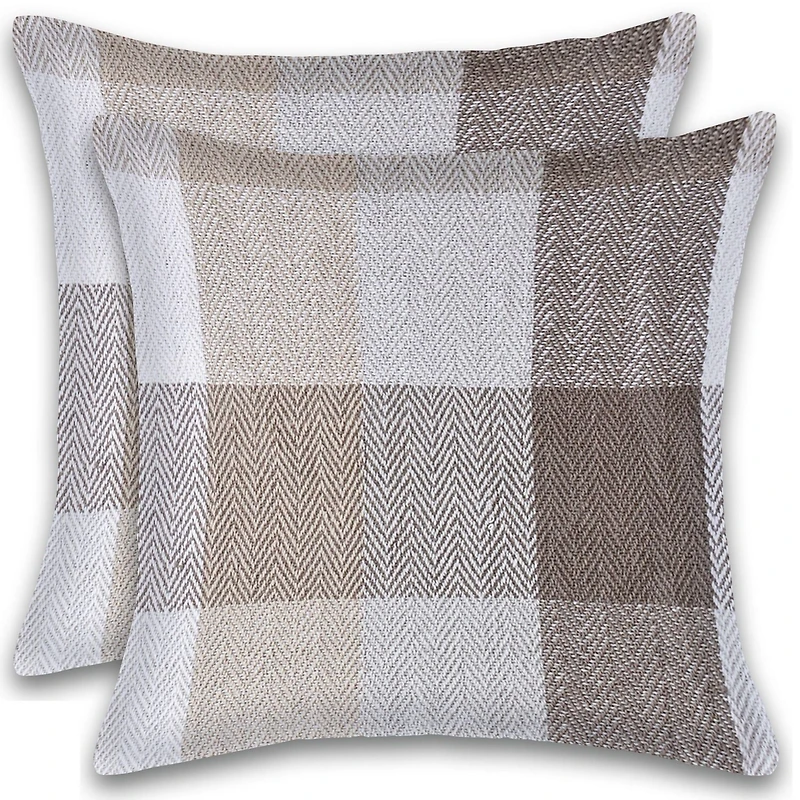 Herringbone Check Cotton Cushions Set of 2 Poly Filled With Zipper Machine Washable