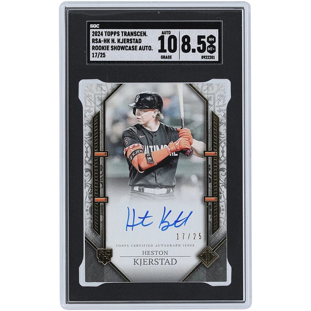 Heston Kjerstad Baltimore Orioles Autographed 2024 Topps Transcendent Rookie Showcase Autograph #RSA-HK #17/25 SGC Authenticated 8.5/10 Rookie Card