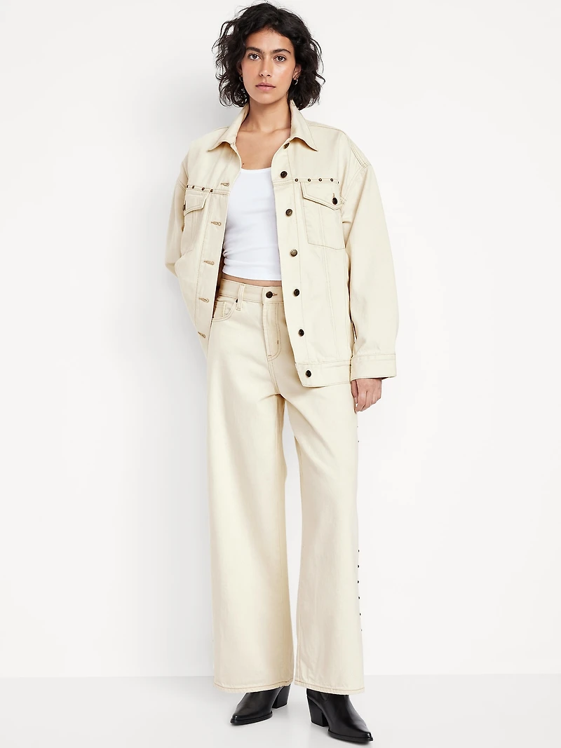 High-Waisted Baggy Wide-Leg Studded Jeans
