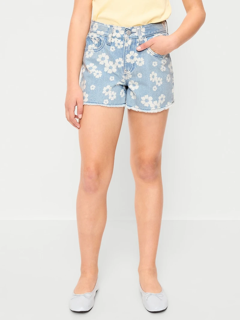 High-Waisted Printed Frayed-Hem Jean Shorts for Girls