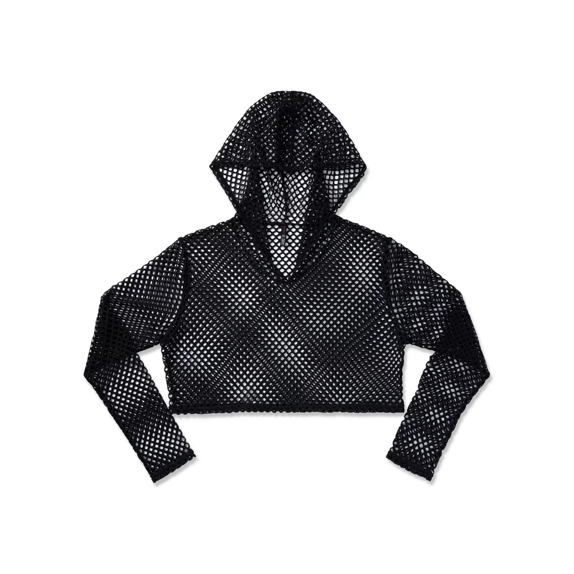 Hooded Fishnet Long Sleeve Crop Top