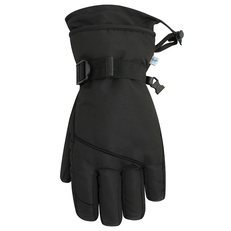 These ski gloves with an extra-long cuff are great to wear while scraping off the car in a snowstorm.Shell: 92% Polyester, 7% Polyvinyl chloride, 1% Polyurethane, Exclusive of trimmingLining: 100% PolyesterInsulation: 80% Polyester fibres, 20% Polyurethane foamCare instructions: machine washable and tumble dry.