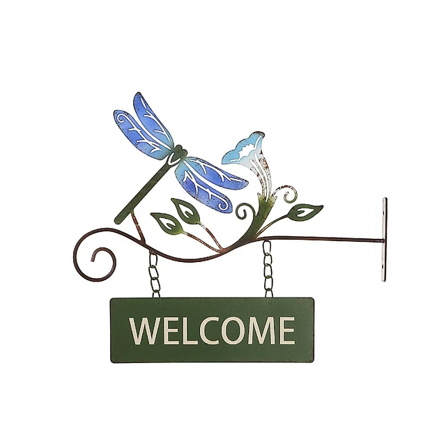 IH Casa Decor Hanging Metal Dragonfly Welcome Sign