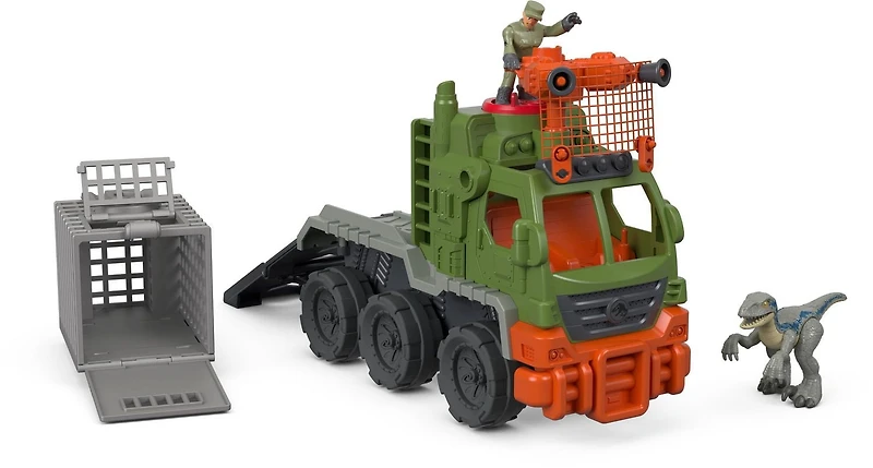 How will the Jurassic World Asset Containment Unit (ACU) round up Blue the dinosaur, who is on the loose.Preschool kids can create their own Jurassic World adventures with this vehicle and figure set from Fisher-Price. Dinosaurs are on the loose! The Asset Containment Unit (ACU) races into action with the fully loaded dinosaur hauler vehicle. A slight turn of the Power Pad lowers the ramp, and a full turn ejects the cage. With Blue the raptor in sight, launch the net projectile to catch her and haul her into the cage. But be careful—one wrong step and the agent could fall in, too! Imaginext Imagine What’s Next!