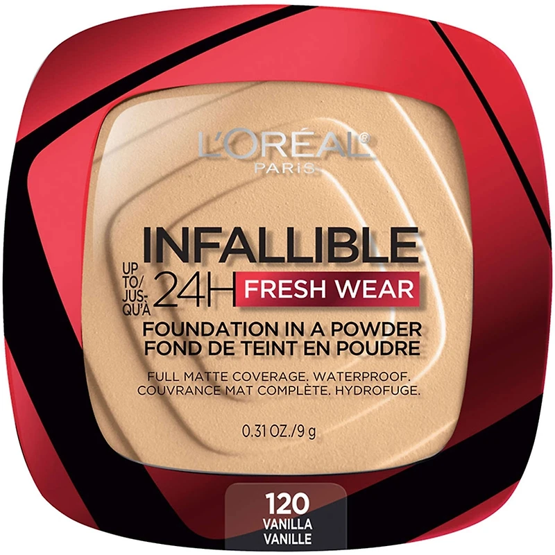 The Infallible Up to 24H fresh Wear FOUNDATION IN A POWDER covers like a Liquid foundation and mattifies like a powder. It provides full coverage with a natural, matte FINISH. The end result will blur, even, and smooth skin without it looking cakey. Weightless, Creamy texture fuses with skin upon application. colour remains true throughout the day WITHOUT dryING OR FADING. matte finish for up to 24H and suitable for all skin types, Oily skin and Acne prone skin. The formula is Waterproof, SWEAT-RESISTANT, HEAT-RESISTANT AND TRANSFER-PROOF.