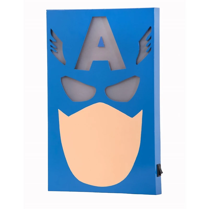 Looking to spruce up a room with a stylish version of Marvel's First Avenger? Perhaps you want to be somewhat illuminated as well...that's why you are probably looking at the super cool Captain America Minimalist LED MDF Box Art!Measuring 12.5'' by 8'', the Captain America Minimalist box art takes the iconic mask of the Sentinel of Liberty and reduces it to a simple and easy to understand image. The best part? This great Captain America item lights up as well! Pretty sweet, eh?Batteries not included; requires 2 AA batteries!