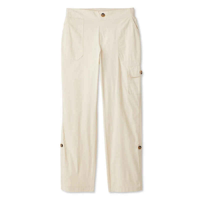 Keep your everyday style easy with Iyla women’s converter pant. They’re made of stretch poplin for easy movement. These pants are designed with a back elasticized waistband for a flexible fit, a faux button closure, 2 patch pockets, and straight legs. Converting buttons on the legs let you switch them into capris on warm days. Pair them with tees, tanks, or lightweight knits for a simple, go-to outfit.