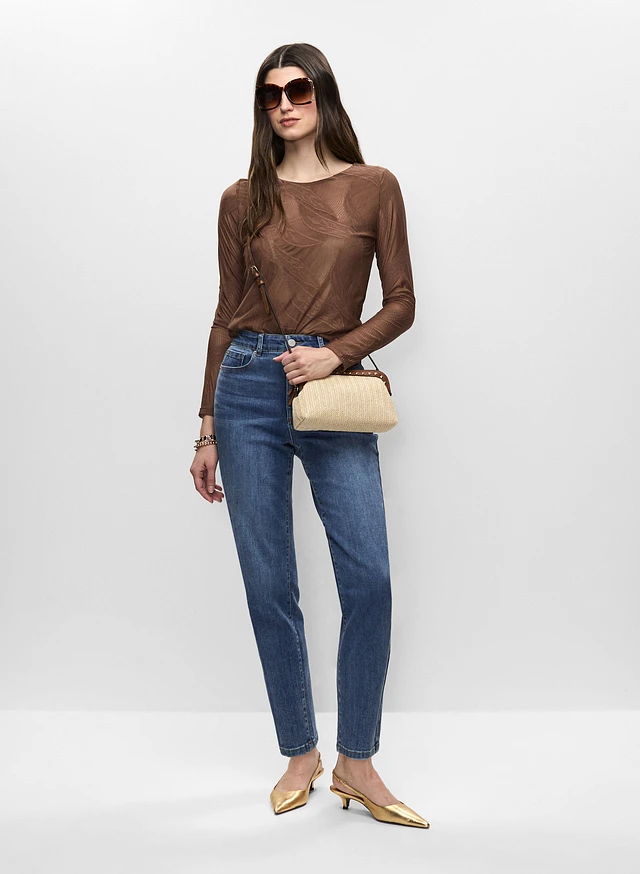 Turtleneck Jacquard Top & Straight Leg Jeans