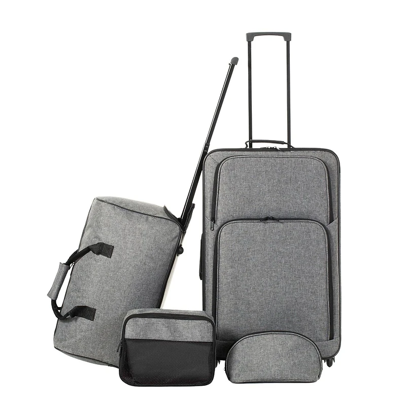 This duo made of durable lightweight material makes this set the preferred style for many travelers. This 4-piece set includes a lightweight 26-inch in-line wheeled soft case, a 20'' wheeled duffle bag, a packing cube, and a toiletry bag.We provide a 2-year warranty with our line of Jetstream luggage.