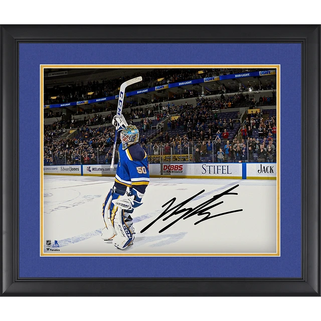Jordan Binnington St. Louis Blues Framed Autographed 16" x 20" Stick Salute Photograph