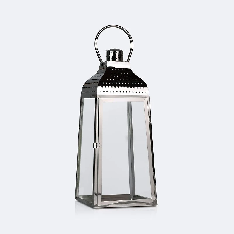 Features ‐ Crafted of metal and glass ‐ Features a shiny silver finish ‐ Traditional, softly curved top and rounded handle ‐ Moveable handle ‐ For indoor or outdoor use ‐ Available in 3 sizes Product Details ‐ Wipe clean with a soft, damp cloth ‐ Made in China