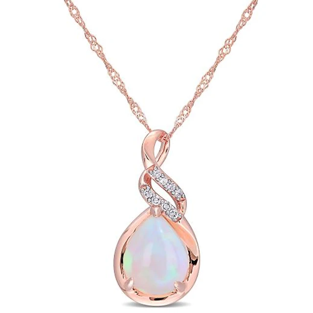 Julianna B 10K Rose Gold Pink Opal & Diamond Pendant