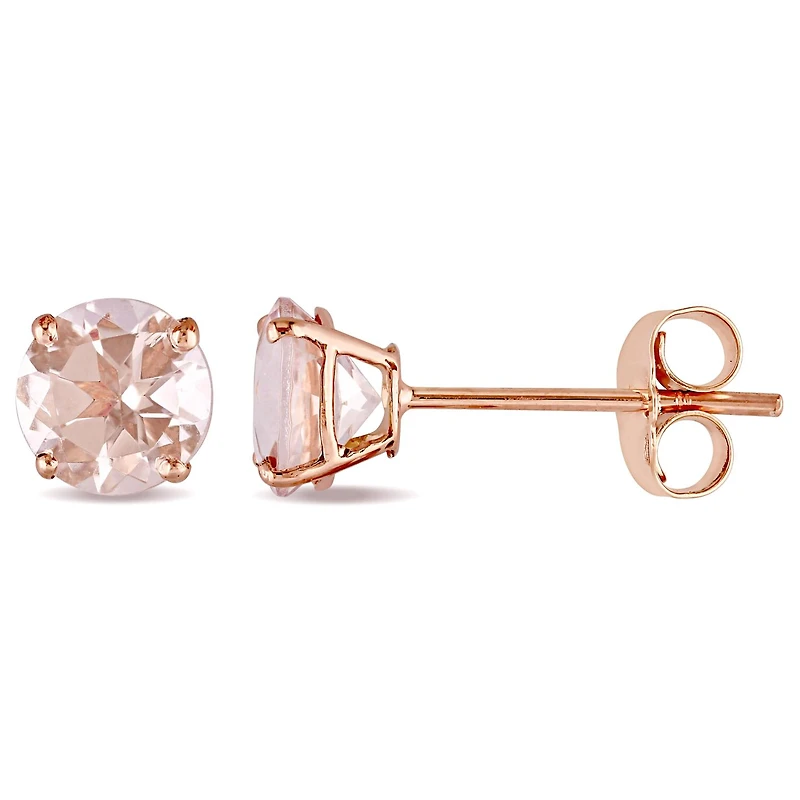 These classic everyday wear stud earrings are crafted in 14-karat rose gold and feature a sparkling morganite in each stud. Coordinate these earrings with any ensemble to add a touch of elegance and sophistication to your look.