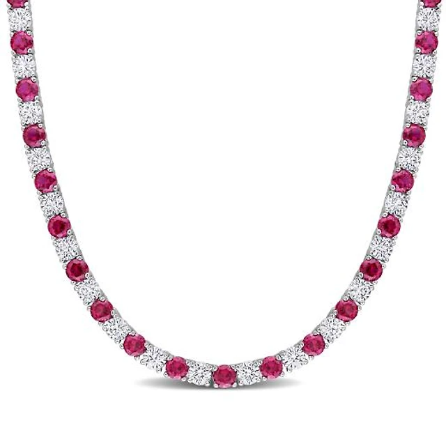 Julianna B Sterling Silver Created Ruby & Created White Sapphire Necklace 17